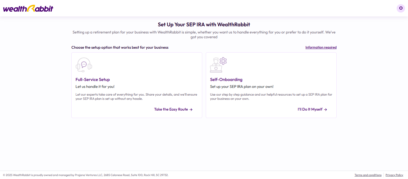WealthRabbit offers a simple, step-by-step setup process to help you establish a SEP IRA plan for your LLC. Here's how to get started:
