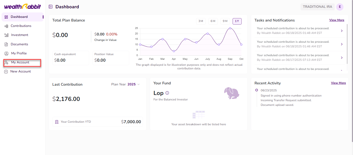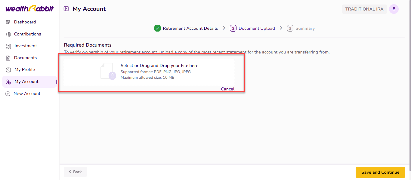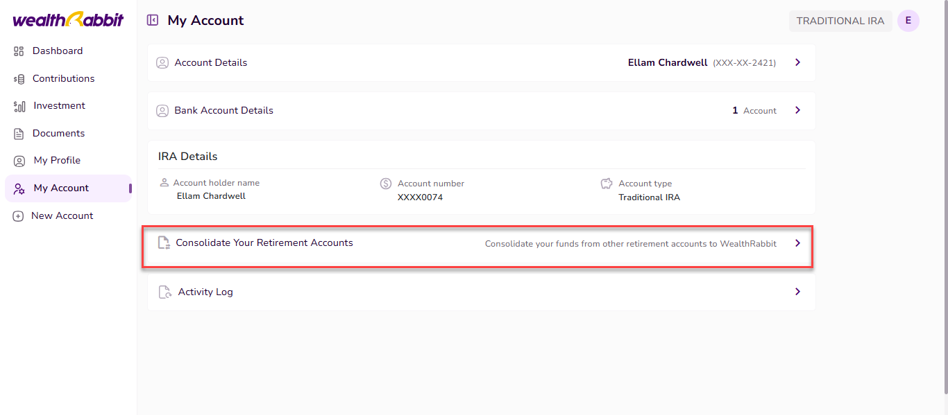 You can easily consolidate your retirement savings in WealthRabbit by transferring your existing Traditional IRA or other qualified retirement accounts. This allows you to manage all your retirement funds in one convenient place within WealthRabbit.