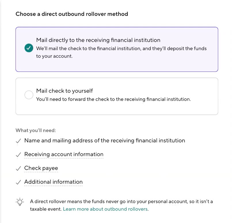 Step 5: Choose the option that says ‘Roll your funds into another 401(k), IRA, or other qualified retirement account’ and click ‘Continue’.